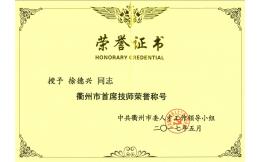 喜訊:我司員工徐德興獲“衢州市首席技師榮譽(yù)稱號(hào)”