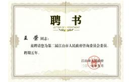 喜訊:我司董事長(zhǎng)王榮受聘為江山市人民政府咨詢委員會(huì)委員