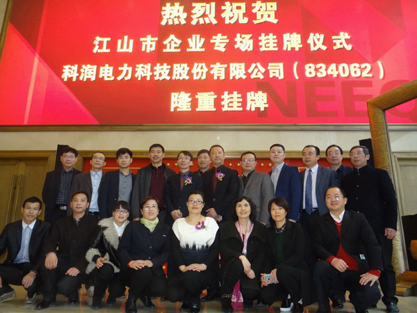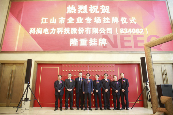 11月18日,全國股轉系統江山企業專場掛牌儀式在北京舉行,科潤電力科技股份有限公司正式在新三板上市,其證券簡稱為“科潤電力”,證券代碼為“834062”。