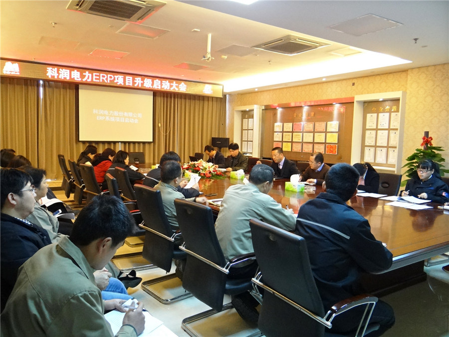 根據董事長的指示精神,為貫徹落實公司信息化戰略全新部署,進一步快速提升企業的現代化管理水平,適應新時期企業管理方式的變革,順應資本市場運作的發展趨勢,3月16日下午,我公司與西安啟源軟件技術有限責任公司項目負責人田如意在209會議室共同召開了“科潤電力ERP系統升級啟動大會”。總經理章群峰、公司項目領導小組成員近30人參加了會議。