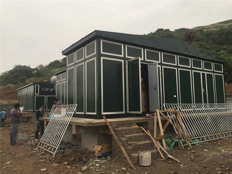 漁山島,地理位置偏僻,交通閉塞,安裝小分隊經(jīng)過5小時的陸路,2小時水路,途中渡海因漲潮時間的不穩(wěn)定,他們還在碼頭露宿了一夜,幾番周折,終于在22日中午12時抵達(dá)目的地。一到工地,他們便立即開啟了卸裝工作。受場地的限制,無法一次性將箱變卸下,而且據(jù)氣象預(yù)報分析,由于汛期已到,漁山島隨時可能遭遇大雨的突襲,箱變吊裝的工作刻不容緩。經(jīng)過商議,安裝小分隊采取了邊卸邊裝的模式,作為隊里年齡最長的樂田光、姜剛友不顧自身安危,親自攀爬搭建箱變屋檐,經(jīng)過2天2夜的奮戰(zhàn),終于趕在大雨來臨前完成吊裝工作,為接下來的工作展開創(chuàng)造了較為有利的基礎(chǔ)條件。