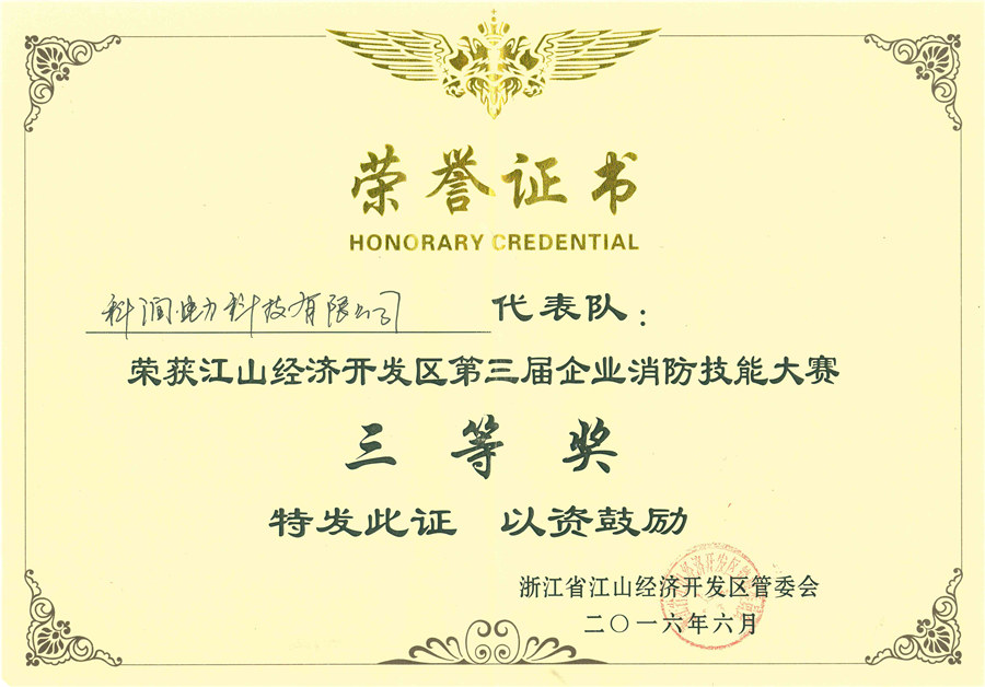 2016年6月25日上午8:00,由市總工會組織的江山經濟開發區第三屆企業消防技能大賽在江東工業園興工路九陽光電公司舉行,我公司黨支部書記樂田光等5人組成的代表隊參加了本次比賽,最終憑借過硬的安全素質和精湛的消防技能,榮獲大賽“三等獎”。