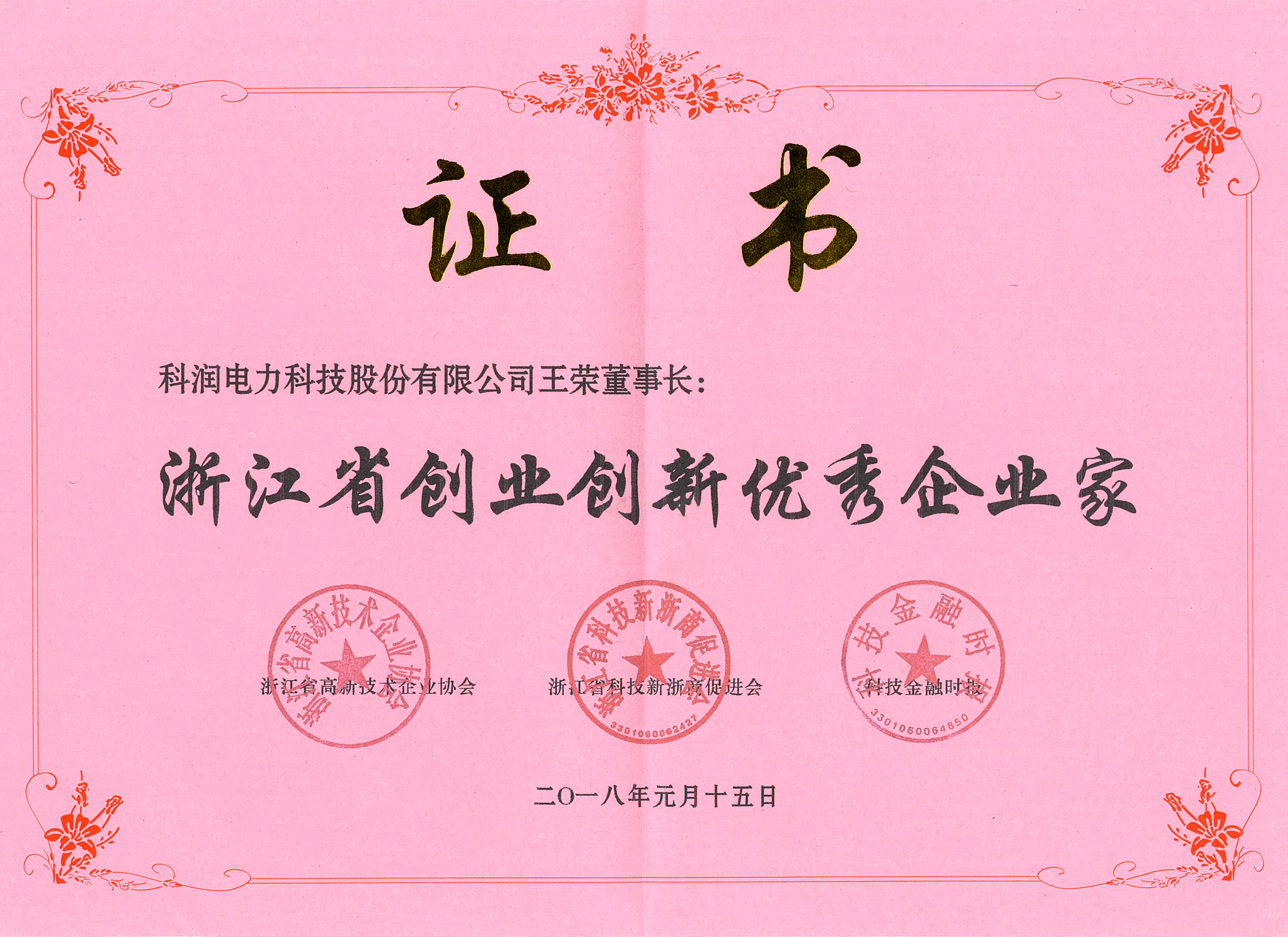 喜訊:公司董事長獲“浙江省創(chuàng)業(yè)創(chuàng)新優(yōu)秀企業(yè)家”