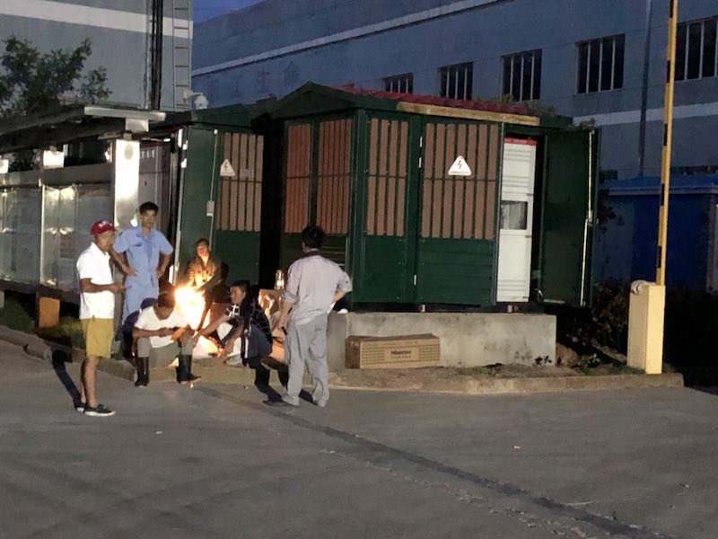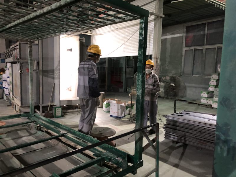 凌晨4:40,光伏變并網(wǎng)人員在準備斷電并網(wǎng),這時,高壓柜已焊接完成順利進入磷化工序。