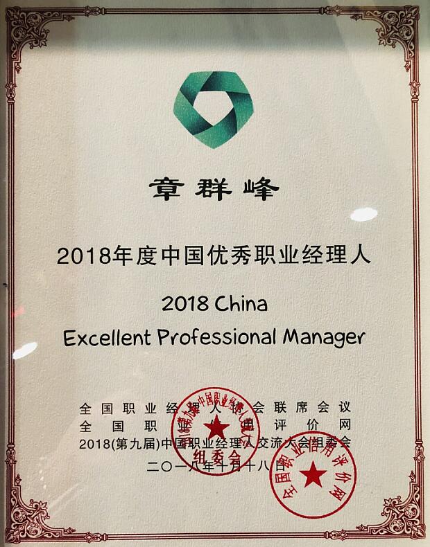 ☆官宣☆ 公司總經理章群峰榮獲2018年度中國優秀職業經理人