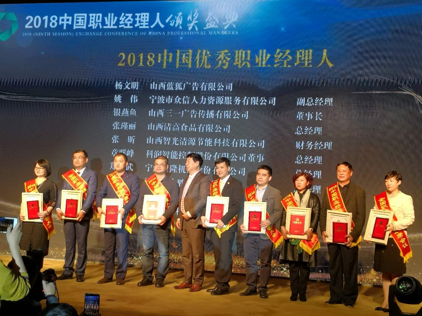 ☆官宣☆ 10月18日,在山西太原舉辦的2018年度全國職業經理人評選表彰盛典上,科潤智能控制股份有限公司總經理章群峰榮獲2018年度中國優秀職業經理人榮譽稱號。