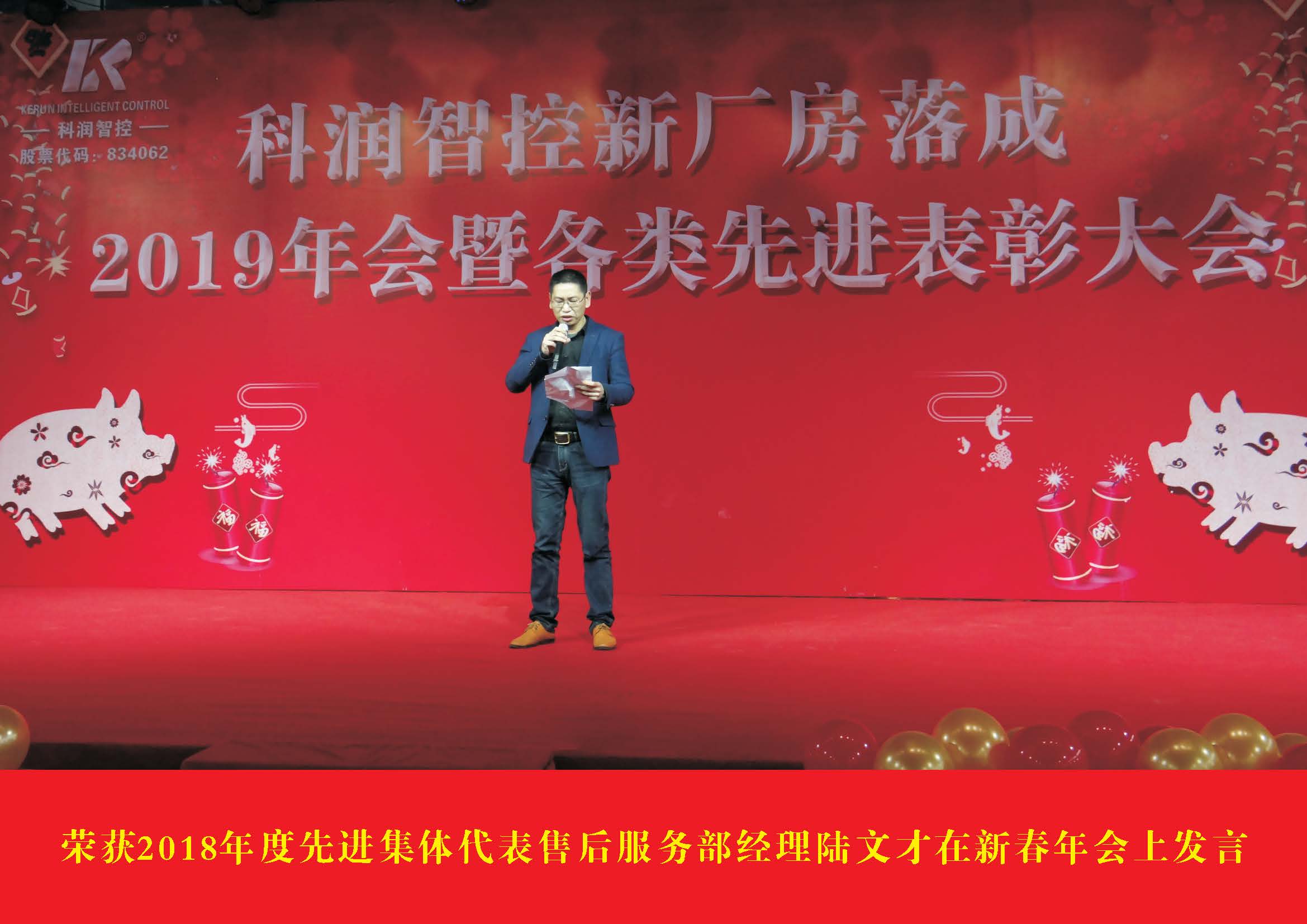 2019年1月30日,公司在新落成的3#廠房內隆重舉行了“科潤智控新廠房落成、2019年會暨各類先進表彰大會”,公司全體員工及嘉賓共計500多人參加了年會。年會對公司在2018年發展進程中取得的各項成果和各類業績進行總結及對各類先進進行表彰,更是慶??茲欀强?span lang="EN-US">3#新廠房的落成,并謀劃新一年的發展布局。