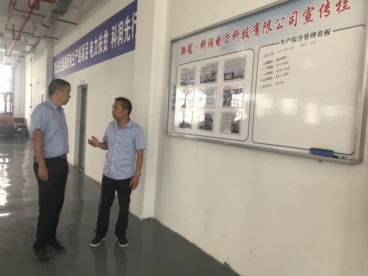 2019年8月17日上午,紫云縣工信局局長(zhǎng)陳佳兵一行蒞臨黔冠·貴州科潤(rùn)電力科技有限公司,紫云縣貓營(yíng)工業(yè)園區(qū)行業(yè)幫扶點(diǎn)進(jìn)行現(xiàn)場(chǎng)考察調(diào)研。