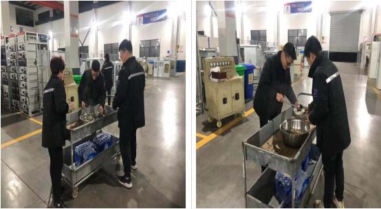 為此,公司董事長王榮和總經理章群峰為使大家能夠感受節日氣氛,同時,鼓足干勁,向年末大關沖刺,特別安排辦公室相關人員在食堂現煮水餃,并深入到各車間為還在一線加班的職工送上熱騰騰的餃子和節日的祝福。王董指出,餃子寓意美好,我們讓大家在冬至之日吃上熱騰騰的餃子,就是為了祝福職工,祝福企業,增進團結,鼓足干勁,投入到各項工作中,希望全體干部職工能夠做好安全生產,為2019圓滿收官。