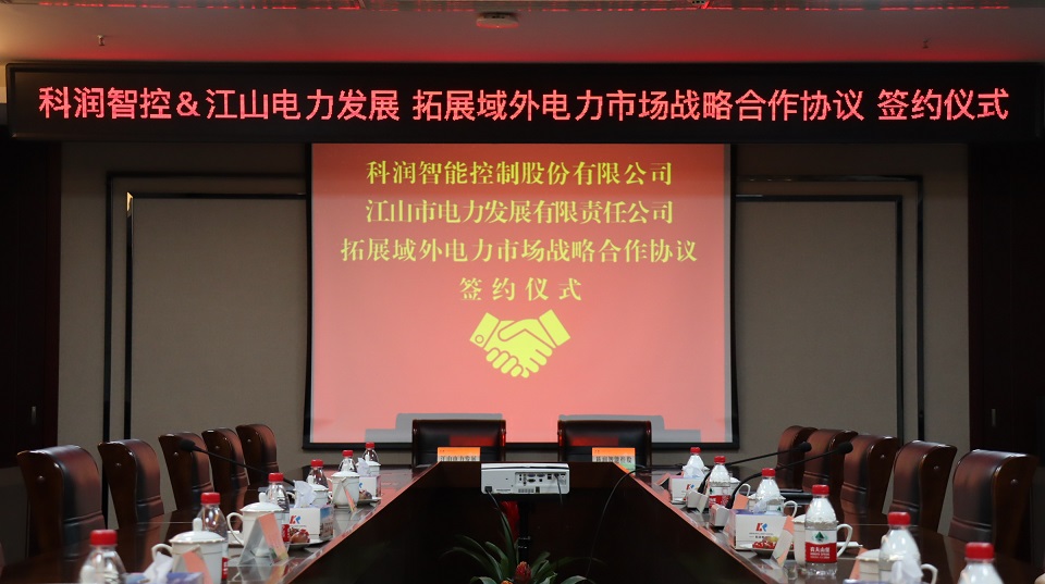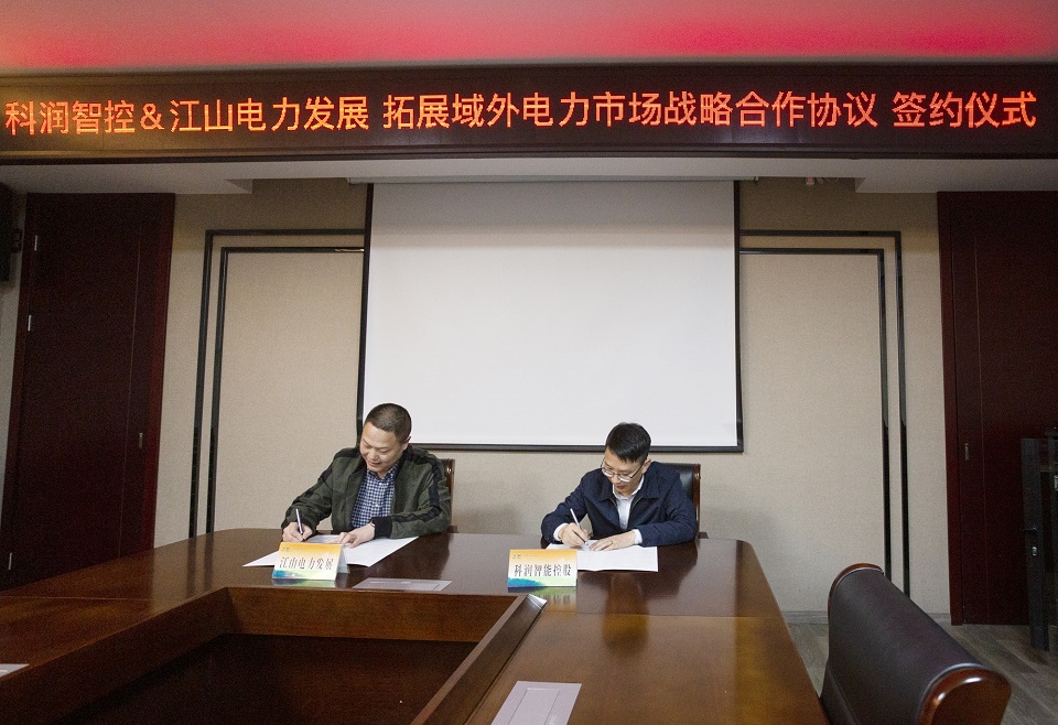 4月7日,科潤智能控制股份有限公司與江山市電力發展有限責任公司簽署拓展域外電力市場的戰略合作協議。科潤智控王榮董事長和江山電力發展薛利兵總經理代表雙方簽約。