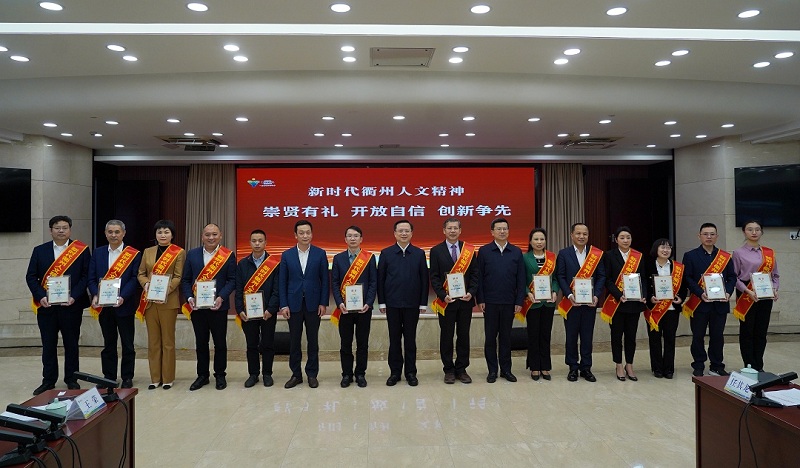 11月25日下午,衢州市舉行新時代衢州人文精神代言人聘書頒發儀式,并召開新時代衢州人文精神代言人座談會。會上,市委書記高屹為16位新時代衢州人文精神代言人頒發聘書。王榮董事長出席受聘儀式,并參加座談。