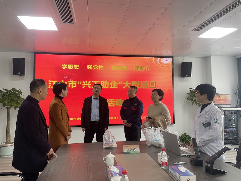12月14日上午,江山市政協副主席何正芳蒞臨公司考察指導,何主席看望了江山市人民醫院來司義診的醫護人員,并慰問了正在參加義診的公司員工。江山市人民醫院黨委書記柴曉東,公司總經理章群峰等領導陪同。